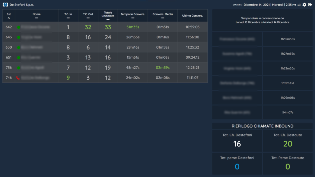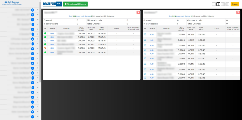 L’integrazione “Gestione code” è stata realizzata per rispondere alle esigenze dei responsabili di Call Center di De Stefani. Questo avanzato sistema di monitoring permette ai supervisori di verificare in tempo reale le performance dei gruppi di chiamata.