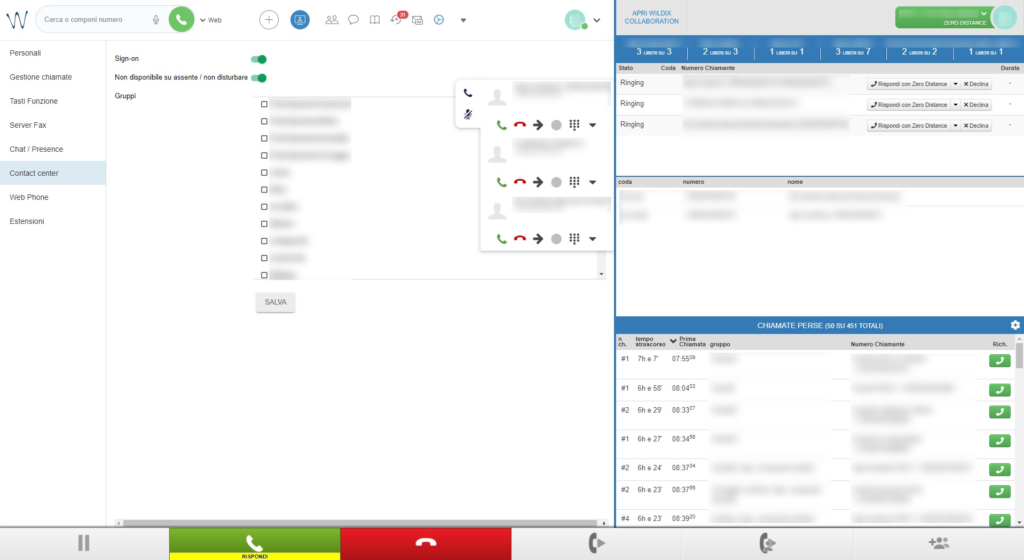 The interface allows the management of inbound calls, but also of missed calls: we have also included Collaboration, so that all other Wildix features are available.
