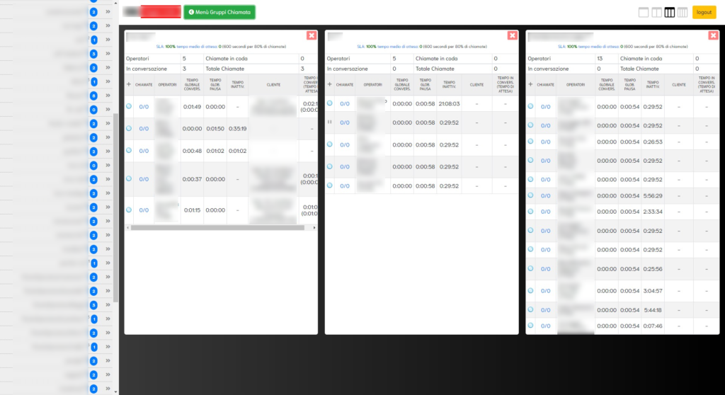 All the management of inbound calls in a single dashboard: the features are unified with a simple and immediate interface, to allow the customer to manage the switchboard in complete autonomy. Through the Inbound Call Center dashboard the switchboard operator has access to the following operations: